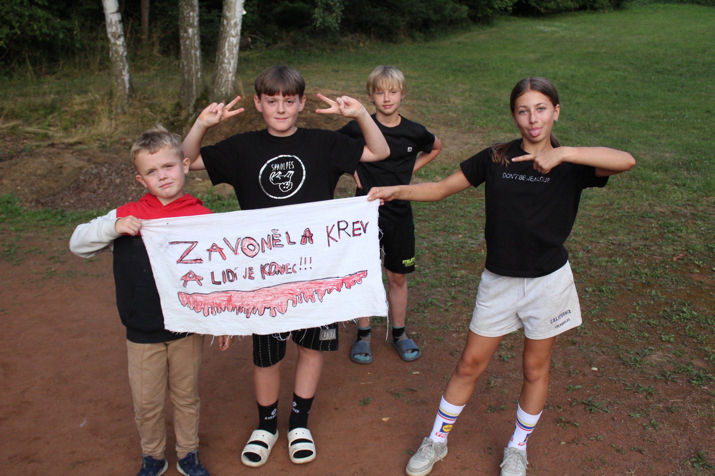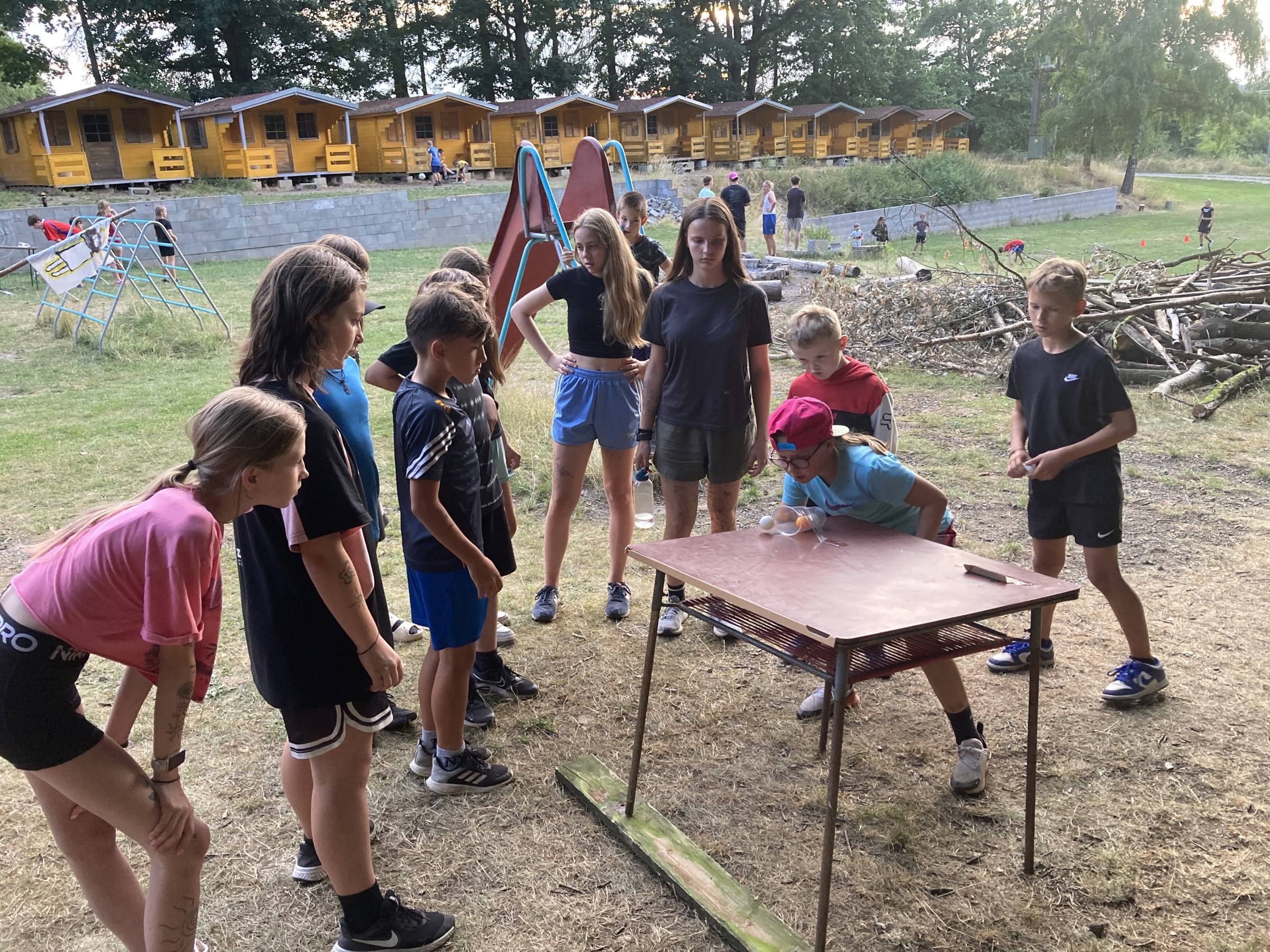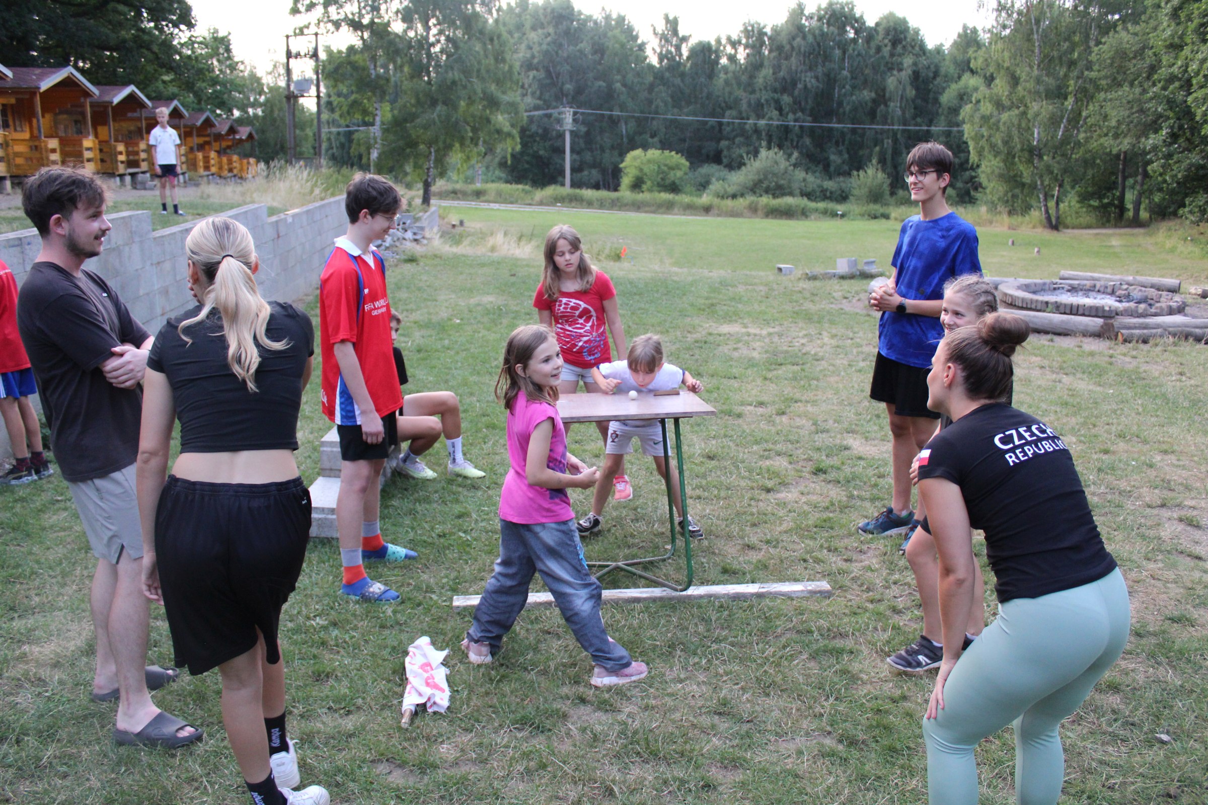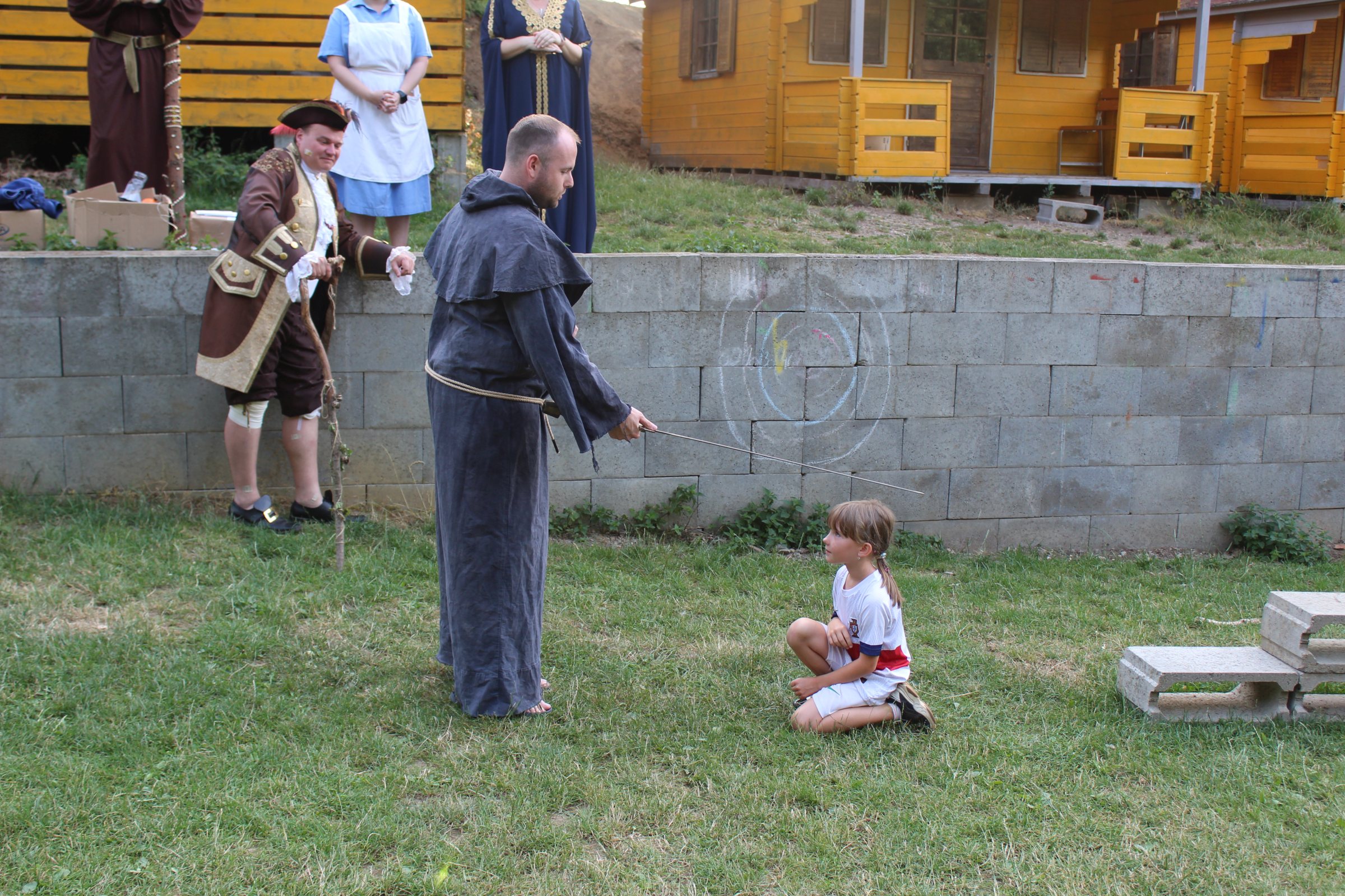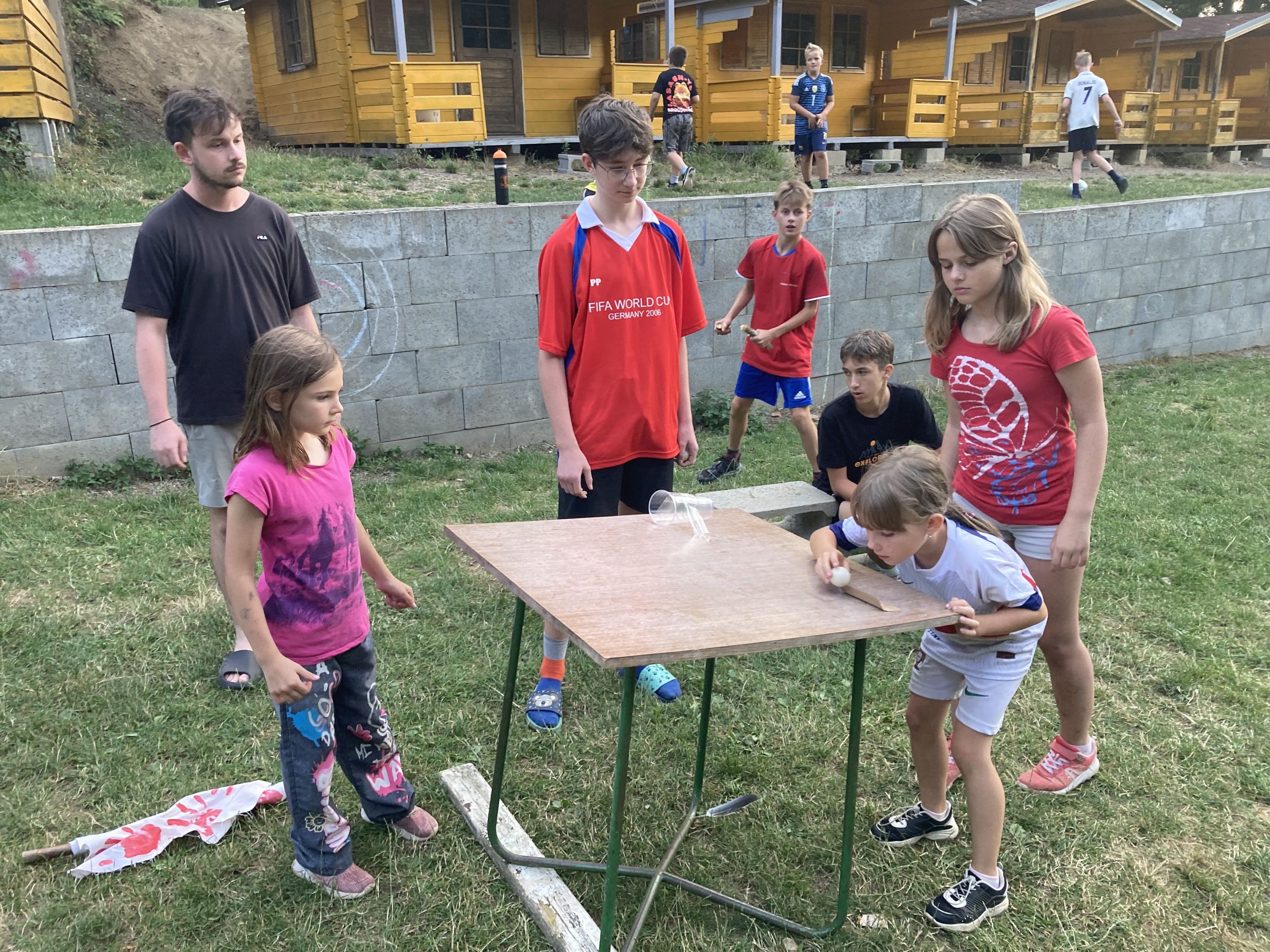 Dnes nás čekal velmi náročný den plný adrenalinu, vytrvalosti a odvahy, proto se omlouváme za pozdní aktualizaci našich stránek. Hned z rána proběhla sportovní zápolení ve vybíjené a fotbale. Napínavá klání probíhala na kvalitní úrovni, ale vyhrát mohl jenom někdo. Hlavně, že se všichni dobře bavili. Síly jsme doplnili výborným smaženým květákem s bramborem. Během poledního klidu byla opět prověřena odolnost a šikovnost soutěžících v Poháru rytíře Raka. Někdo musel z kola ven a finálová kola se blíží. Odpoledne si táborníci vyzkoušeli soutěžení ve stolním fotbálku, ping-pongu, frisbeegolfu, střelbě kuší, hodu na basketkoš, kopu na branku, bolloballu a šipkách. Po povečeření těstovinového salátu následoval nástup. Proběhlo povyšování nejšikovnějších hrdinů, ale i ponižování neposlušných tovaryšů. Nejdůležitější zprávou dne ovšem bylo, že se nám probral vévoda Jan, dobitý, poblouzněný a neschopen přebrat vládu ve svém vévodství. V rámci svého léčení se prochází po vévodství, hledá ztracenou paměť a neuvěřitelně blábolí. Večer proběhl další střet, tentokrát mezi lidmi a upíry. Upíři prokázali, že jsou při síle a uštědřili oslabeným lidem drtivou porážku. Lidé a vlkodlaci tedy mají motivaci do posledního souboje, aby si zlepšili morálku před finálovým kláním. Byl to náročný den a všichni se jistě těšili do svých postýlek, ale to ještě netušili (no, někteří to tušili a netrpělivě očekávali už několik dní), že přijde na řadu noční stezka odvahy. Všichni se vzbudili, překonali svůj strach i zívání a v pořádku se vrátili zpět do tábora. Unavení, ale plní zážitků usínali s očekáváním, co nás vše ještě čeká…