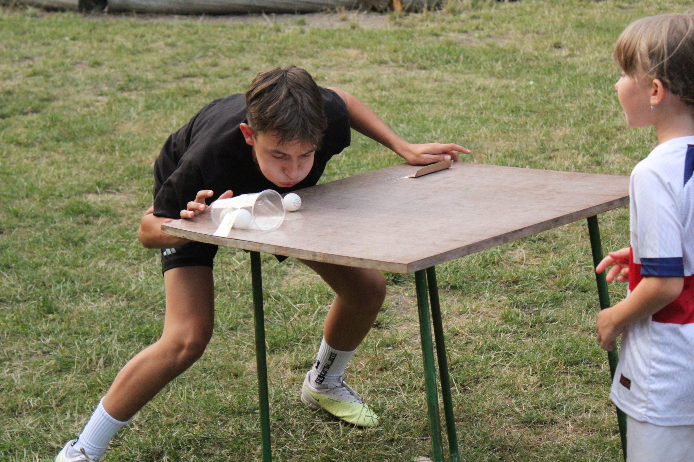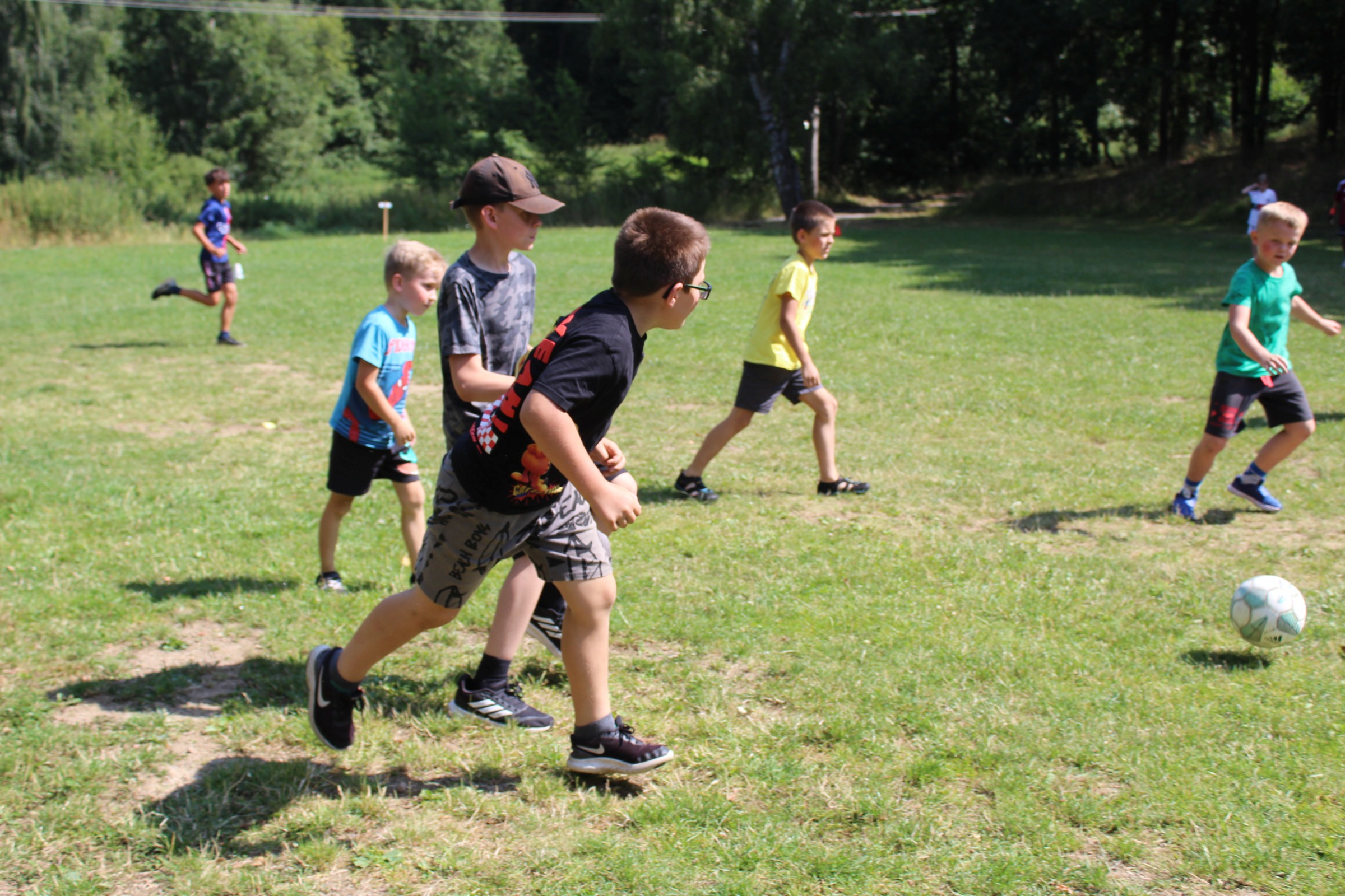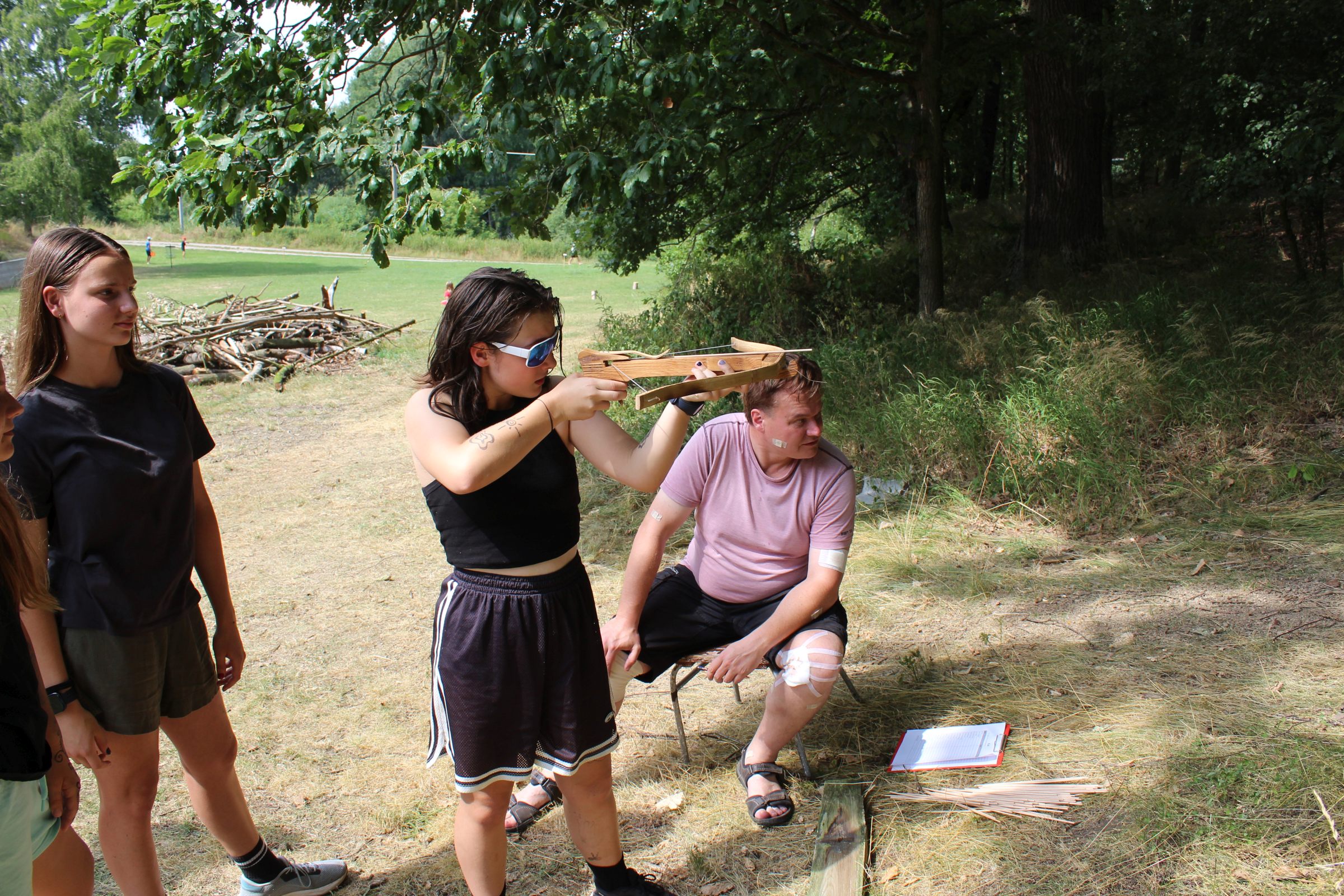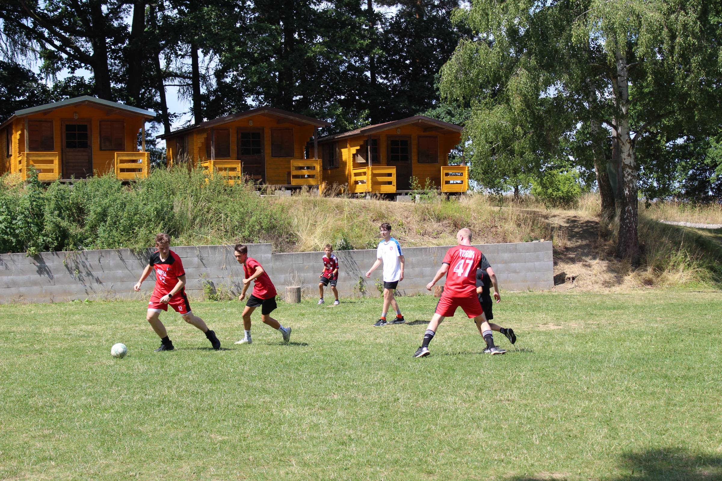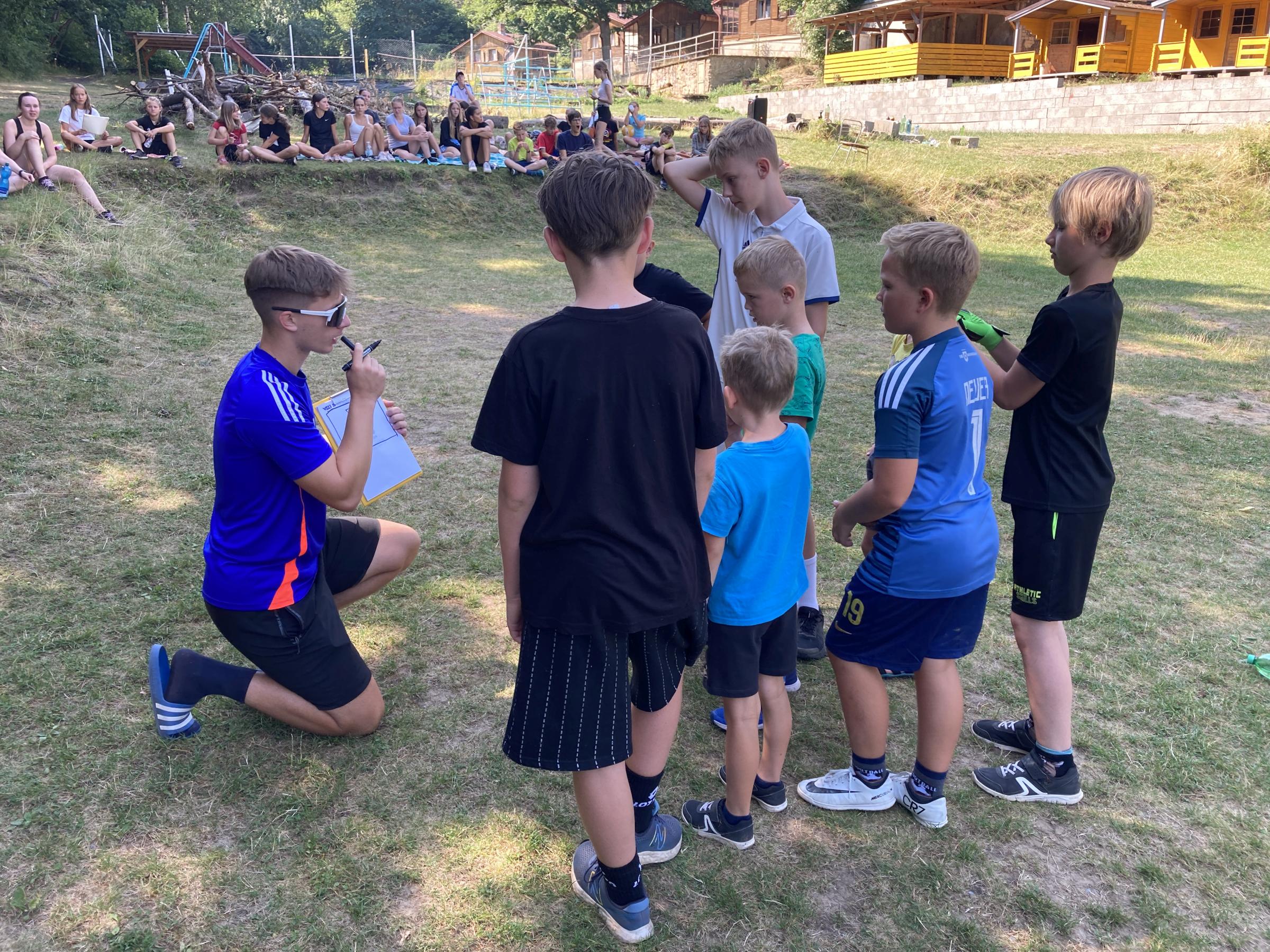 Dnes nás čekal velmi náročný den plný adrenalinu, vytrvalosti a odvahy, proto se omlouváme za pozdní aktualizaci našich stránek. Hned z rána proběhla sportovní zápolení ve vybíjené a fotbale. Napínavá klání probíhala na kvalitní úrovni, ale vyhrát mohl jenom někdo. Hlavně, že se všichni dobře bavili. Síly jsme doplnili výborným smaženým květákem s bramborem. Během poledního klidu byla opět prověřena odolnost a šikovnost soutěžících v Poháru rytíře Raka. Někdo musel z kola ven a finálová kola se blíží. Odpoledne si táborníci vyzkoušeli soutěžení ve stolním fotbálku, ping-pongu, frisbeegolfu, střelbě kuší, hodu na basketkoš, kopu na branku, bolloballu a šipkách. Po povečeření těstovinového salátu následoval nástup. Proběhlo povyšování nejšikovnějších hrdinů, ale i ponižování neposlušných tovaryšů. Nejdůležitější zprávou dne ovšem bylo, že se nám probral vévoda Jan, dobitý, poblouzněný a neschopen přebrat vládu ve svém vévodství. V rámci svého léčení se prochází po vévodství, hledá ztracenou paměť a neuvěřitelně blábolí. Večer proběhl další střet, tentokrát mezi lidmi a upíry. Upíři prokázali, že jsou při síle a uštědřili oslabeným lidem drtivou porážku. Lidé a vlkodlaci tedy mají motivaci do posledního souboje, aby si zlepšili morálku před finálovým kláním. Byl to náročný den a všichni se jistě těšili do svých postýlek, ale to ještě netušili (no, někteří to tušili a netrpělivě očekávali už několik dní), že přijde na řadu noční stezka odvahy. Všichni se vzbudili, překonali svůj strach i zívání a v pořádku se vrátili zpět do tábora. Unavení, ale plní zážitků usínali s očekáváním, co nás vše ještě čeká…