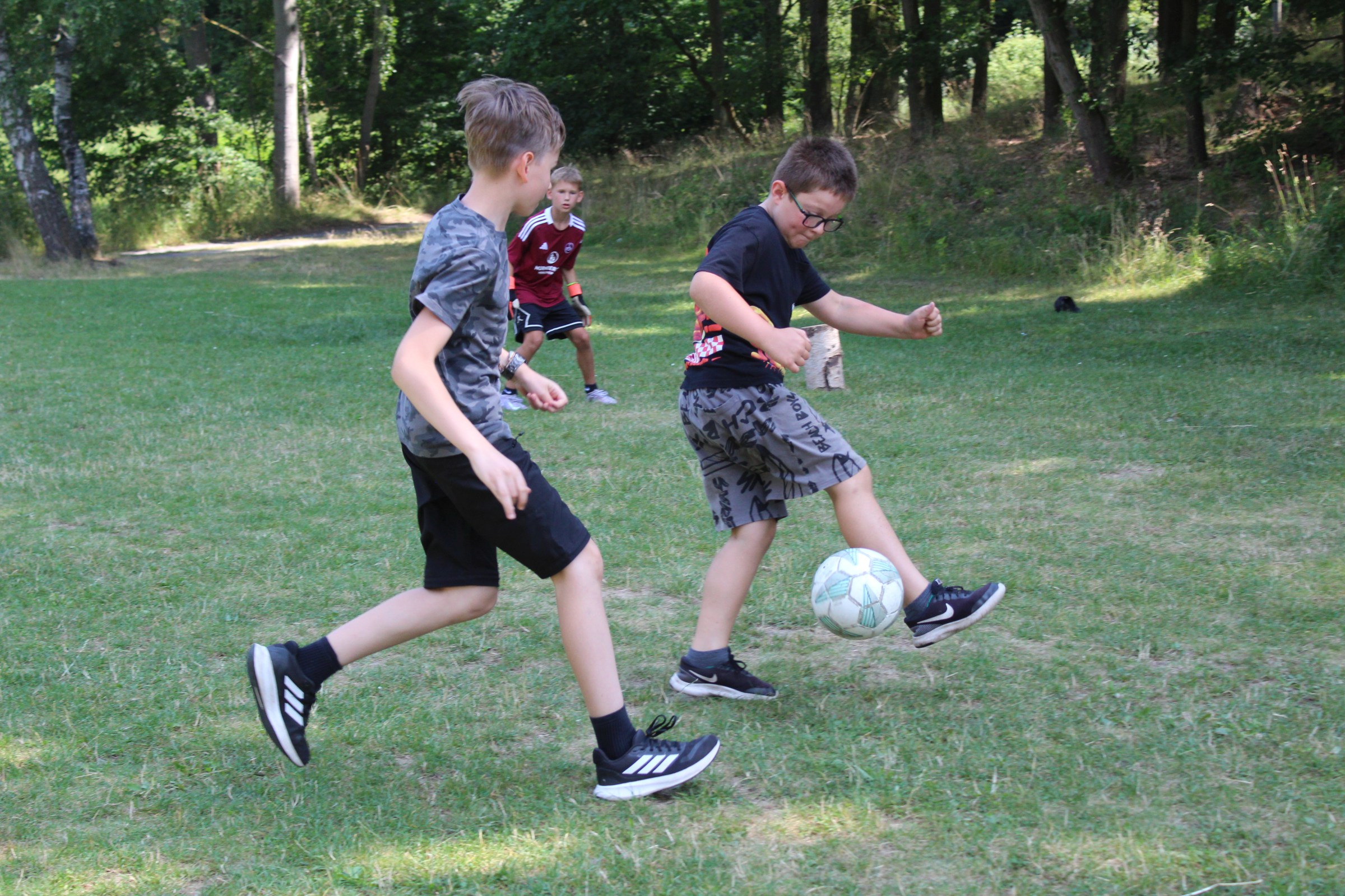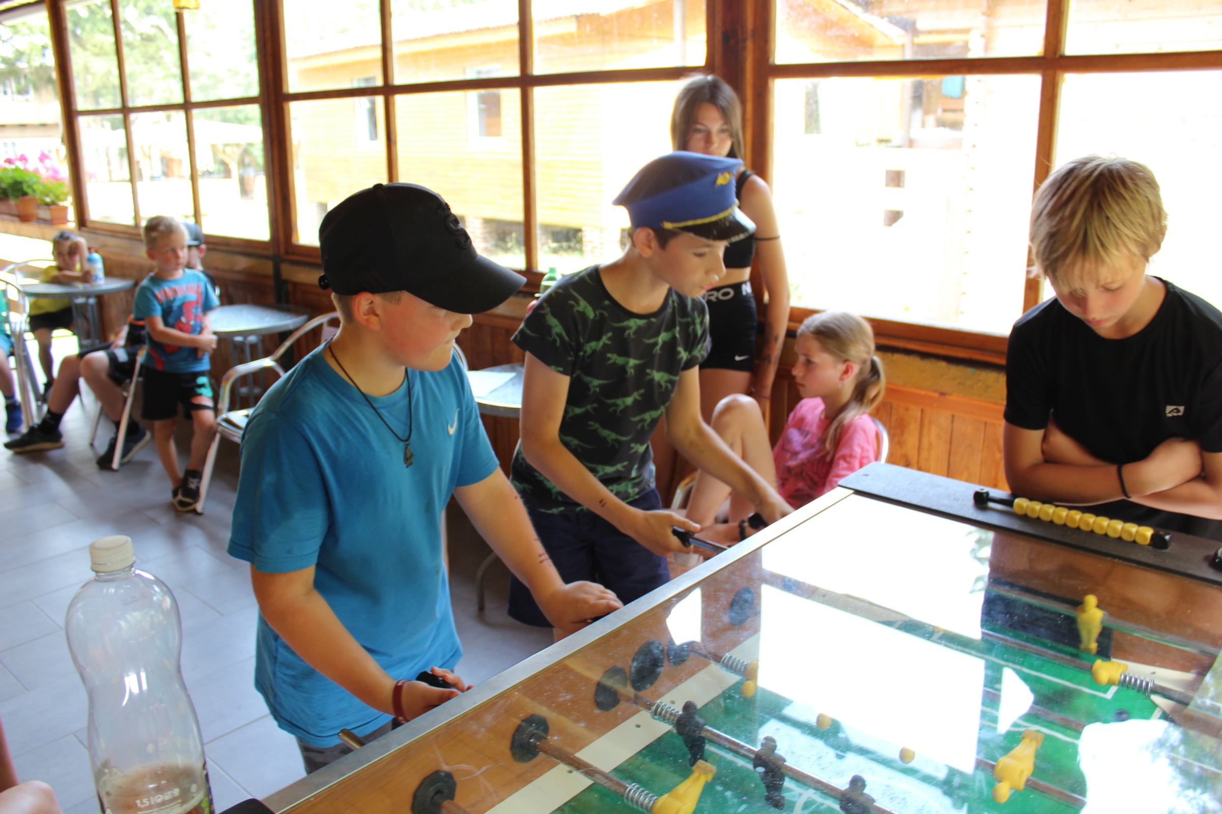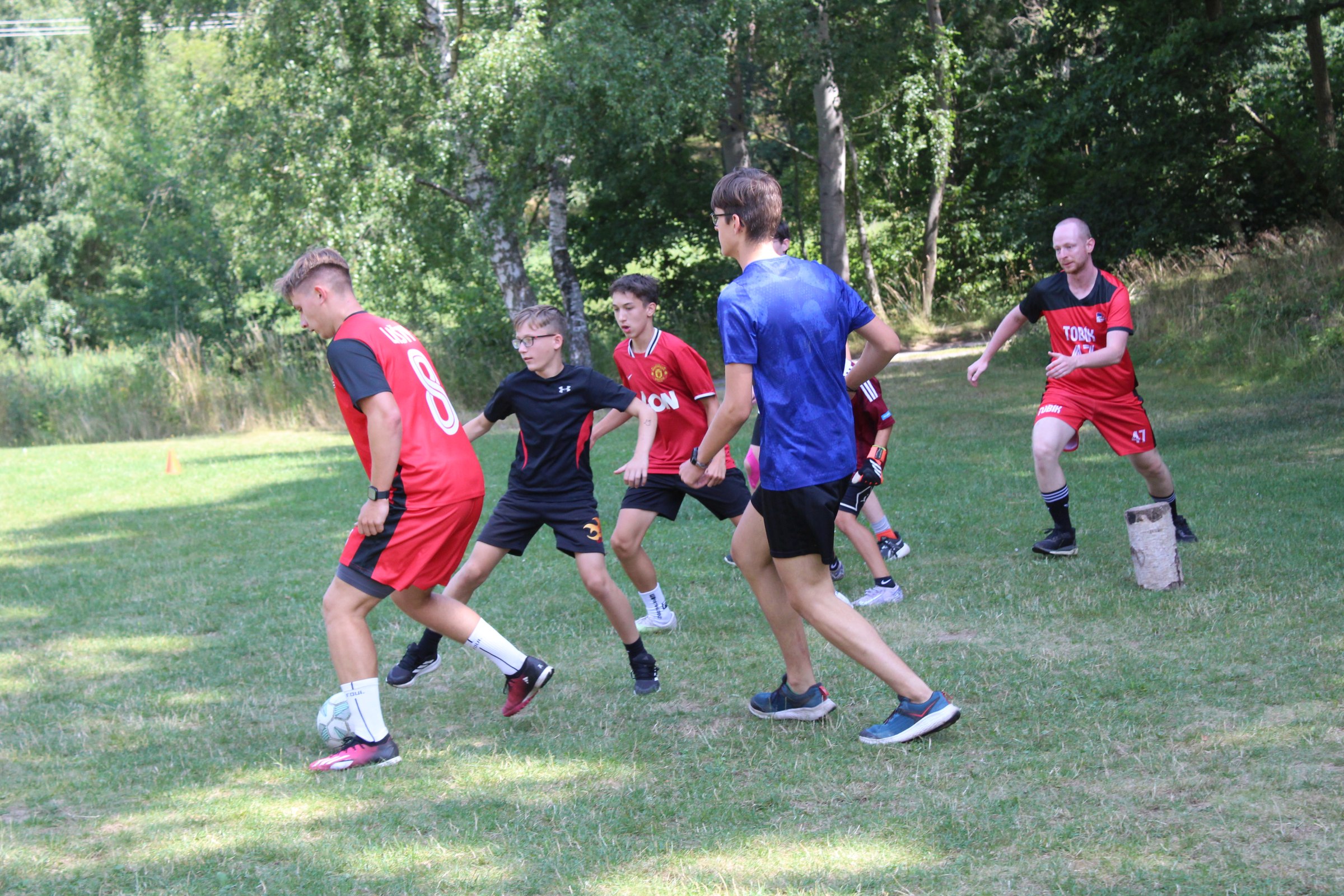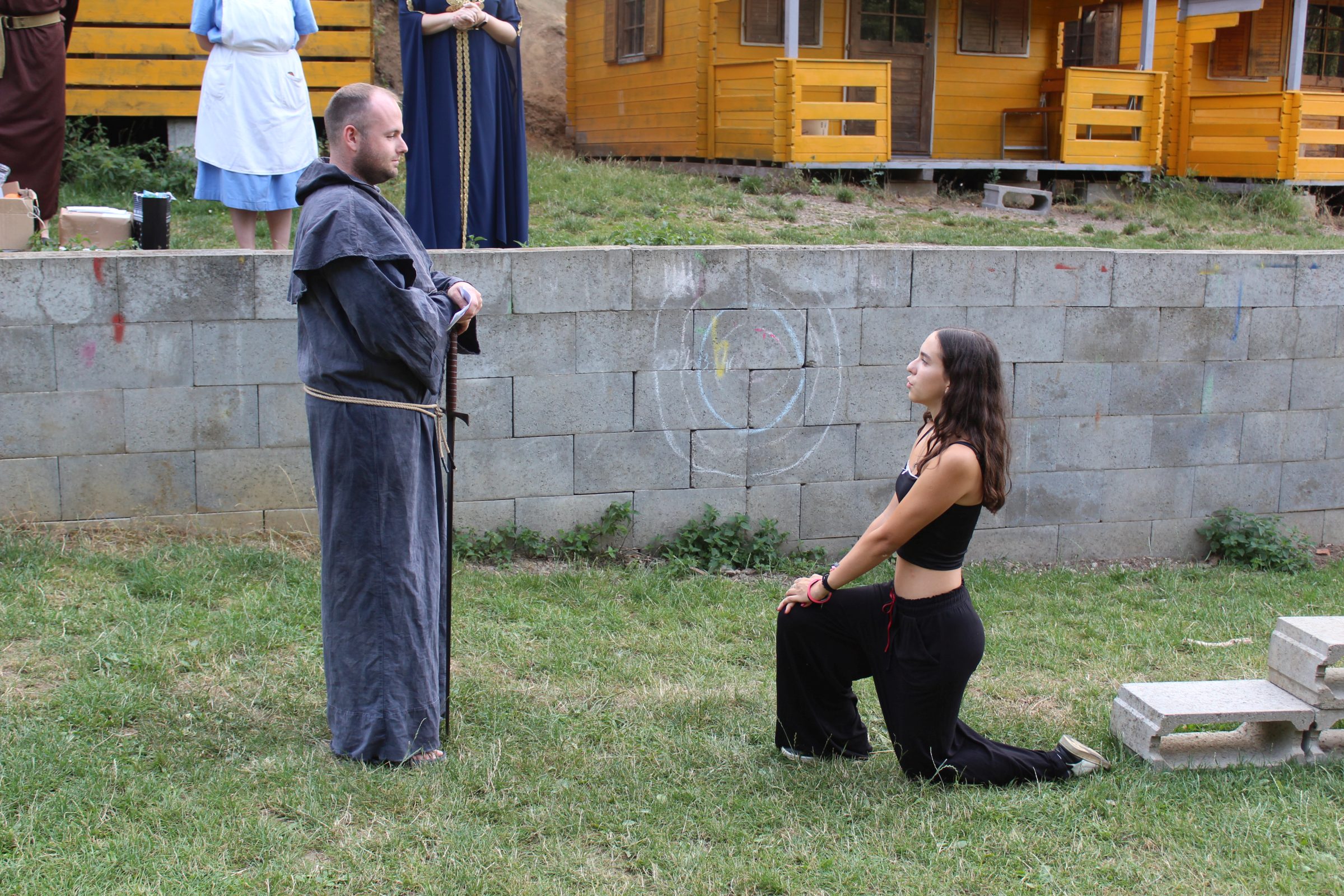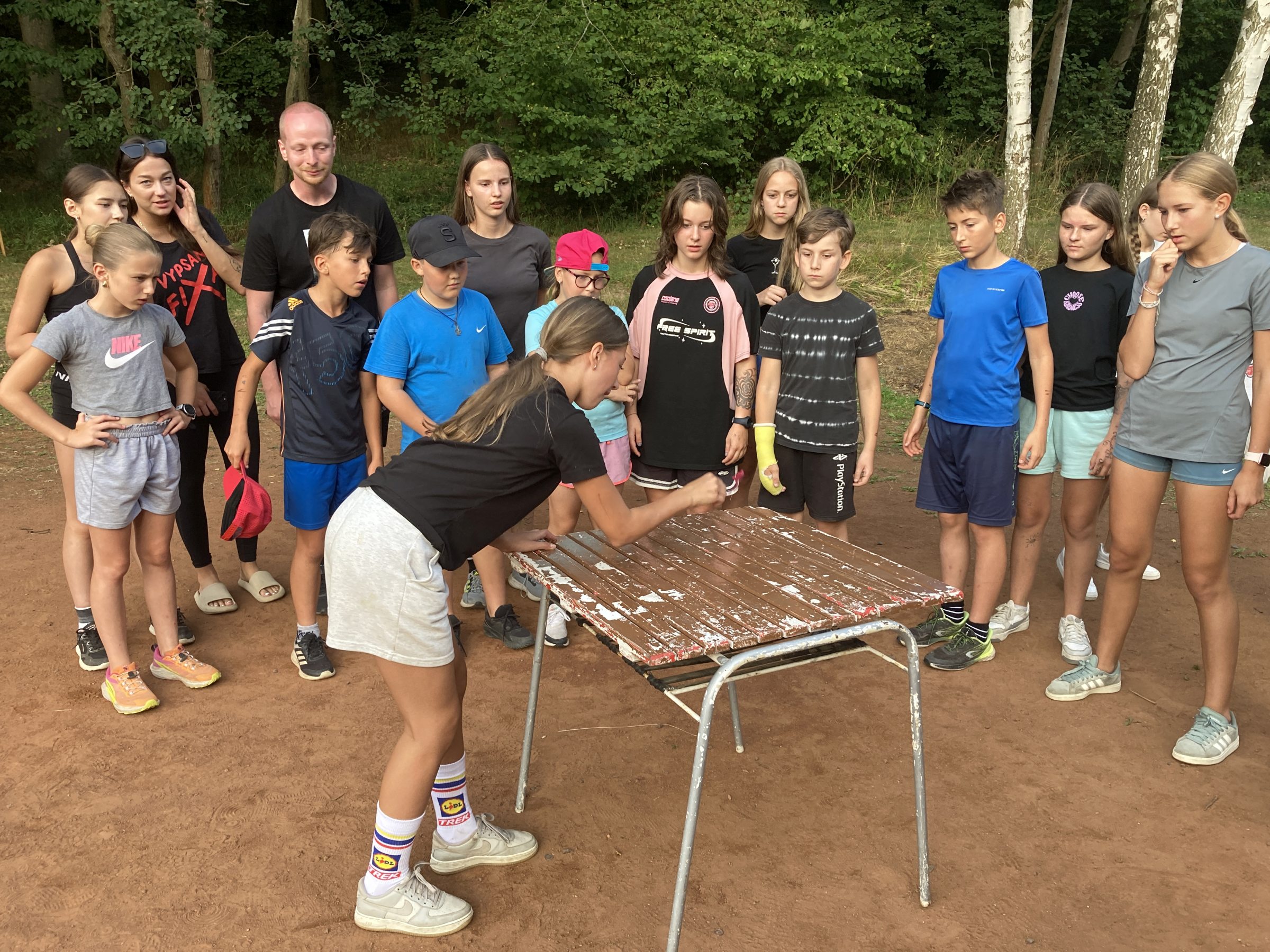 Dnes nás čekal velmi náročný den plný adrenalinu, vytrvalosti a odvahy, proto se omlouváme za pozdní aktualizaci našich stránek. Hned z rána proběhla sportovní zápolení ve vybíjené a fotbale. Napínavá klání probíhala na kvalitní úrovni, ale vyhrát mohl jenom někdo. Hlavně, že se všichni dobře bavili. Síly jsme doplnili výborným smaženým květákem s bramborem. Během poledního klidu byla opět prověřena odolnost a šikovnost soutěžících v Poháru rytíře Raka. Někdo musel z kola ven a finálová kola se blíží. Odpoledne si táborníci vyzkoušeli soutěžení ve stolním fotbálku, ping-pongu, frisbeegolfu, střelbě kuší, hodu na basketkoš, kopu na branku, bolloballu a šipkách. Po povečeření těstovinového salátu následoval nástup. Proběhlo povyšování nejšikovnějších hrdinů, ale i ponižování neposlušných tovaryšů. Nejdůležitější zprávou dne ovšem bylo, že se nám probral vévoda Jan, dobitý, poblouzněný a neschopen přebrat vládu ve svém vévodství. V rámci svého léčení se prochází po vévodství, hledá ztracenou paměť a neuvěřitelně blábolí. Večer proběhl další střet, tentokrát mezi lidmi a upíry. Upíři prokázali, že jsou při síle a uštědřili oslabeným lidem drtivou porážku. Lidé a vlkodlaci tedy mají motivaci do posledního souboje, aby si zlepšili morálku před finálovým kláním. Byl to náročný den a všichni se jistě těšili do svých postýlek, ale to ještě netušili (no, někteří to tušili a netrpělivě očekávali už několik dní), že přijde na řadu noční stezka odvahy. Všichni se vzbudili, překonali svůj strach i zívání a v pořádku se vrátili zpět do tábora. Unavení, ale plní zážitků usínali s očekáváním, co nás vše ještě čeká…