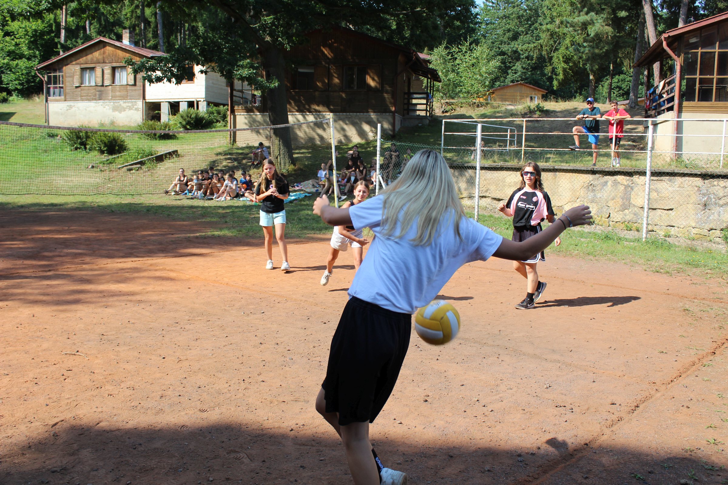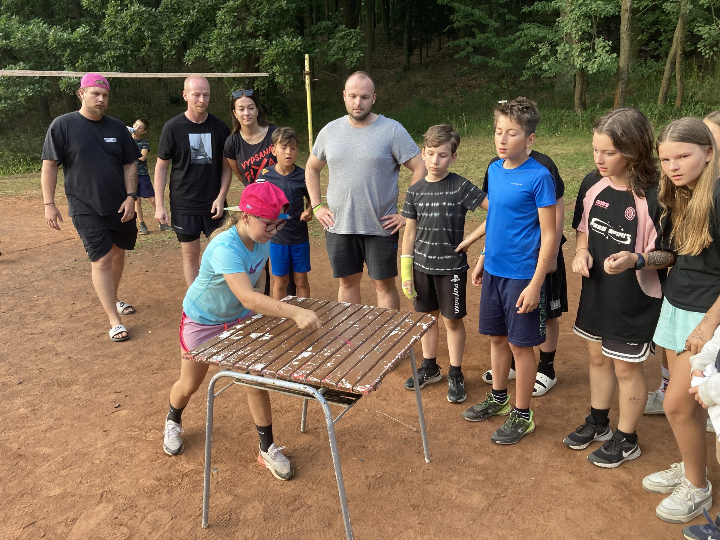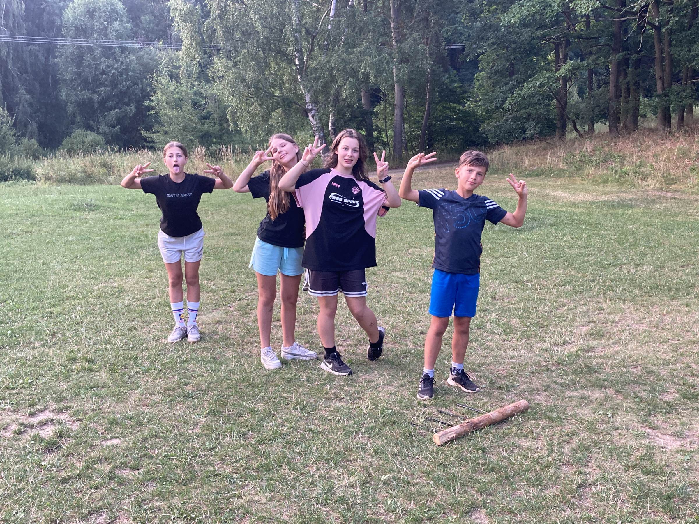 Dnes rano jsme vstaly a šly připravit snídan Po vidatné snídani jsme šly koukat na vybyjenou. Tradičně vihrály vedoucí. Vedoucí drtili nejen ve vybíjené ale i v fotbale. Pak po drtive porážce vedoucí začli oslavovat. Ale vše spravil objed. Bilo kuře na paprice. Po mňamozním objede sme šli plnit soutěže bilo to velmi ale velmi težke. Ale i přez to všechno jsme dokázaly splnit vše. Dokonce i při soutěžích přišel vévoda sice hodně polámaný ale Lucka i přes to vilečila a přišel na velmi zajímaví souboj vedoucich a nejstarších klukú. Bilo hodně vidět že si to užívá protoze lezl do hřiště. Večeře bila dobrá někomu nechutnala ale někomu jo. Po večeři bude nástup a po nástupu bude velmi zajímaví souboj soutěžit budou lidi vs. upíři.