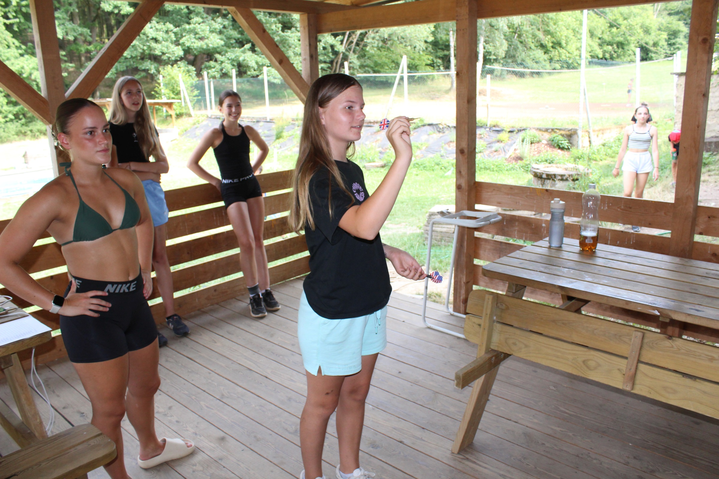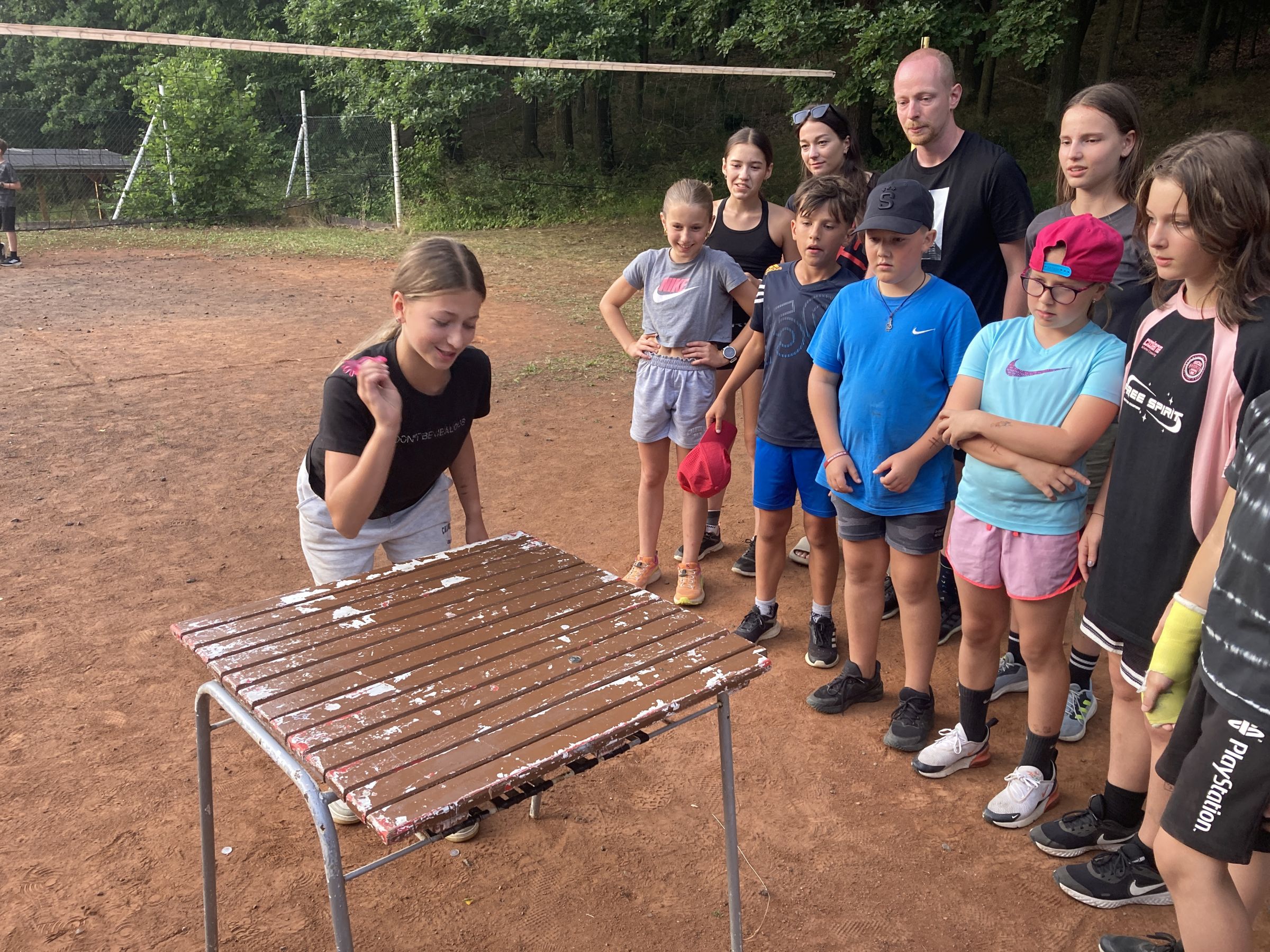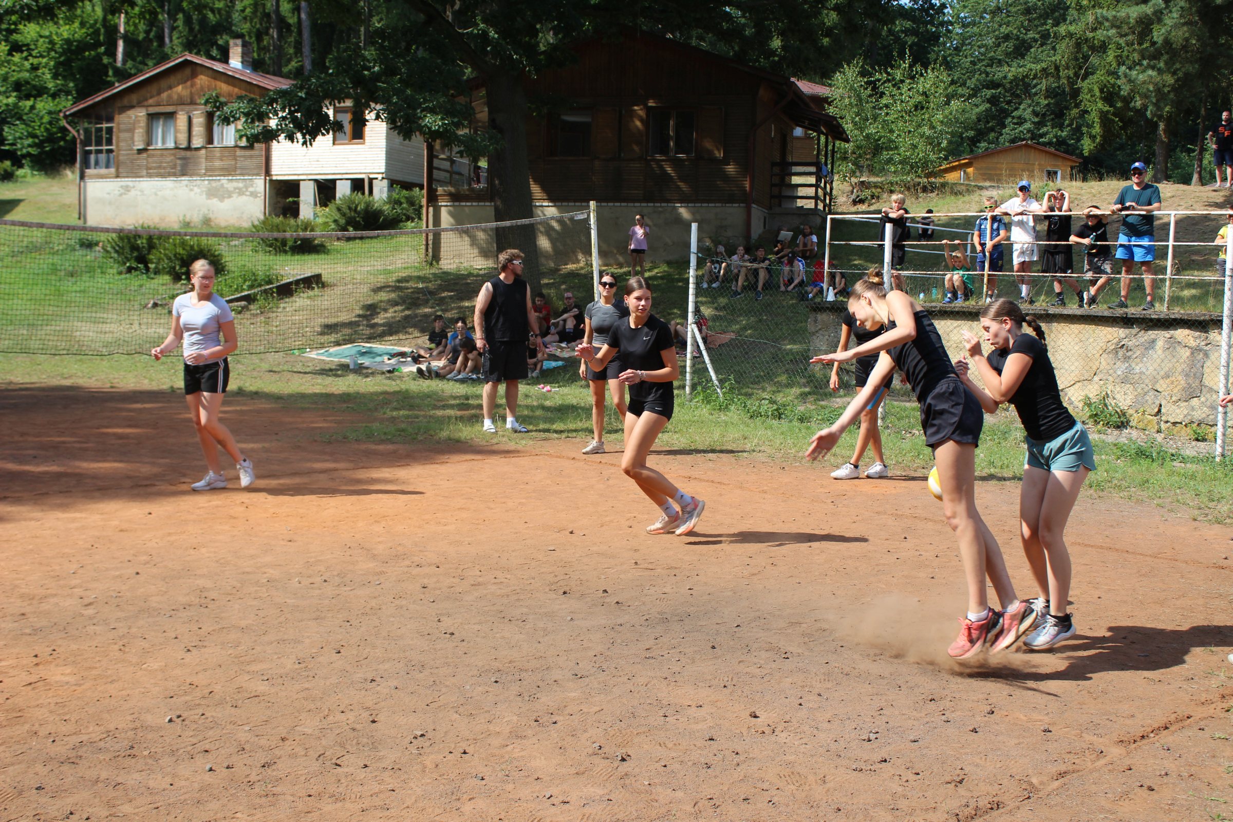 Dnes rano jsme vstaly a šly připravit snídan Po vidatné snídani jsme šly koukat na vybyjenou. Tradičně vihrály vedoucí. Vedoucí drtili nejen ve vybíjené ale i v fotbale. Pak po drtive porážce vedoucí začli oslavovat. Ale vše spravil objed. Bilo kuře na paprice. Po mňamozním objede sme šli plnit soutěže bilo to velmi ale velmi težke. Ale i přez to všechno jsme dokázaly splnit vše. Dokonce i při soutěžích přišel vévoda sice hodně polámaný ale Lucka i přes to vilečila a přišel na velmi zajímaví souboj vedoucich a nejstarších klukú. Bilo hodně vidět že si to užívá protoze lezl do hřiště. Večeře bila dobrá někomu nechutnala ale někomu jo. Po večeři bude nástup a po nástupu bude velmi zajímaví souboj soutěžit budou lidi vs. upíři.